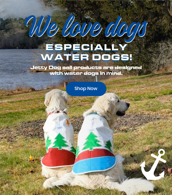 That was until I purchased a recycled sail bean bag to compliment the nautical décor in our Cape home. Little did I know our Golden, Winston, would choose it as his favorite spot for naps and lounging by the window. Then came Walter, Golden #2, who as a puppy pushed his older brother aside and claimed it as his own! Seeing how much they both enjoyed the "humans" bean bag, coupled with the fact it was easy to clean and didn't absorb water or odors, I thought to myself "why not make them a sail bed of their own?" And so, one brainstorm, a few prototypes and a leaky hull later - Jetty Dog was born!