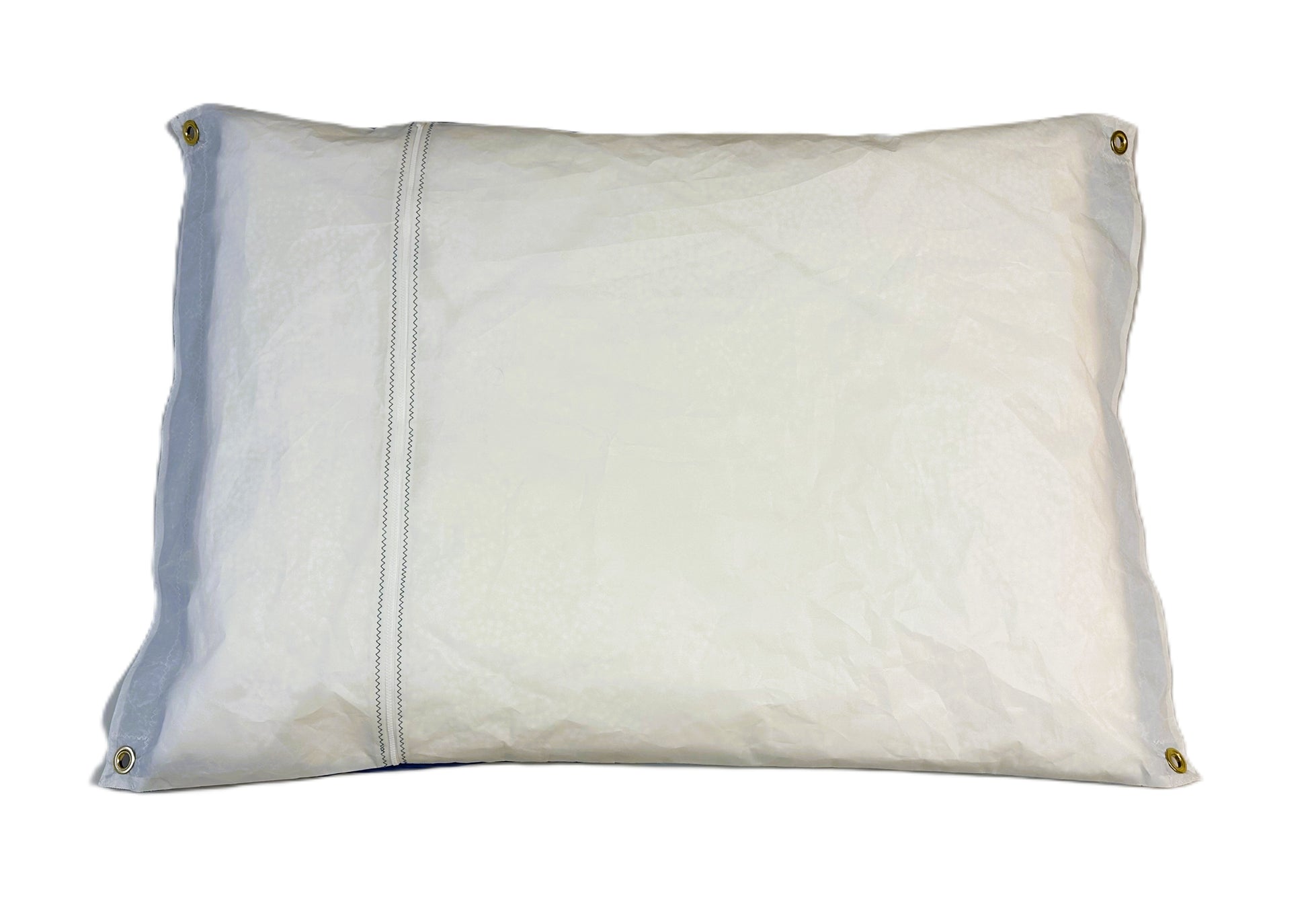 Skies are blue and water too! Made out of recycled sails, this sail bed reflects the original character of its' sail with unique stitching details, grommet accents, origination marks and time told imperfections.  It is 100% weatherproof and the recycled foam fill provides the perfect resting spot for your pup without absorbing moisture or odors.