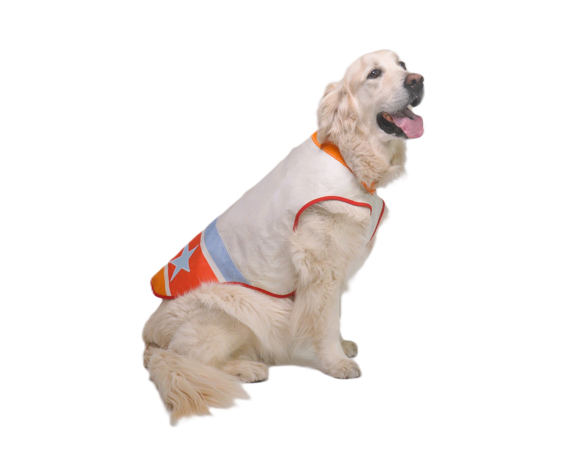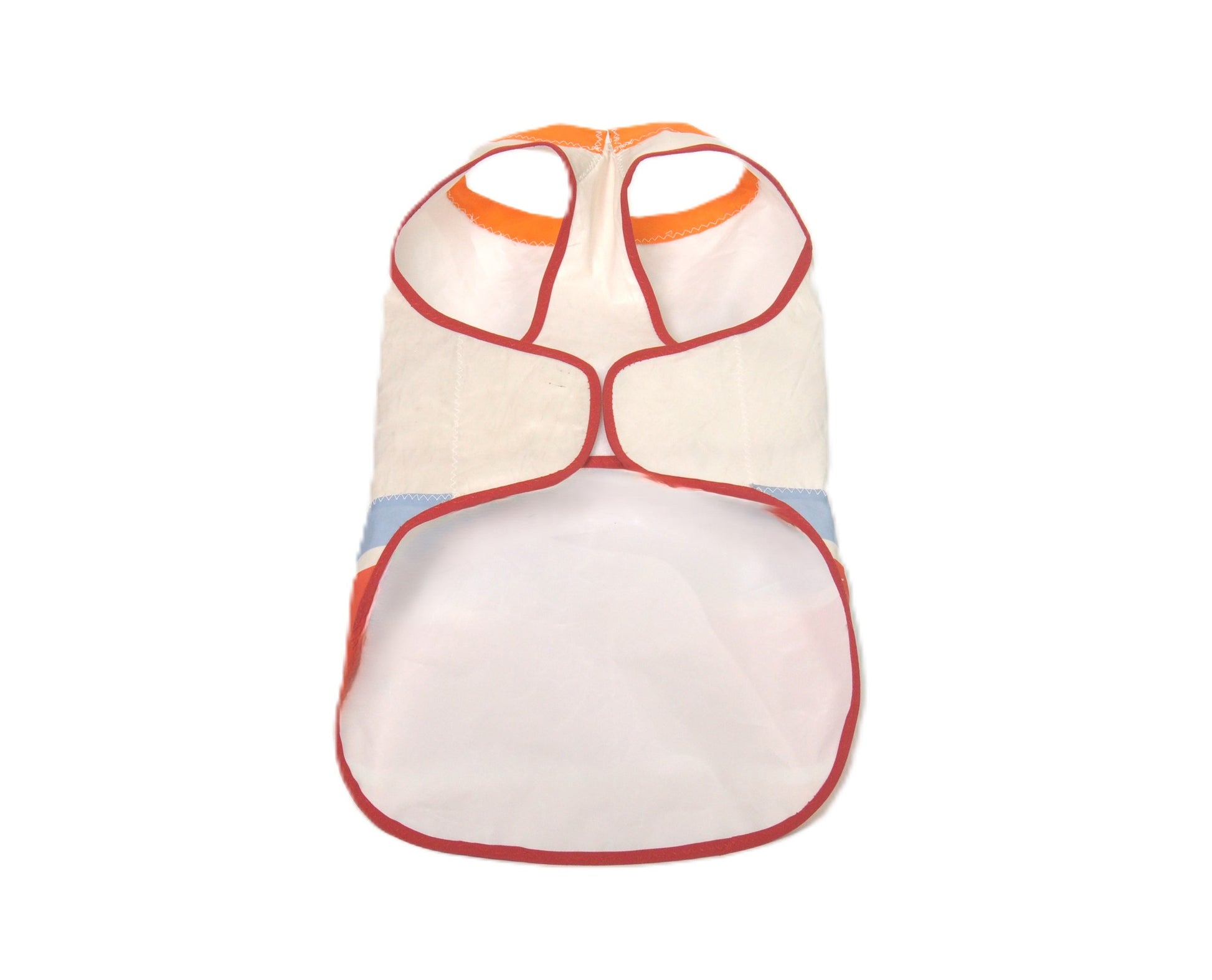 This playful, nautical themed raincoat will keep your pup dry when it’s raining cats and dogs! Made out of recycled and upcycled sails, this custom raincoat features a unique pattern with contrast stitching, a 2-way zipper for collar/harness access and adjustable closure to accommodate for varying chest sizes.